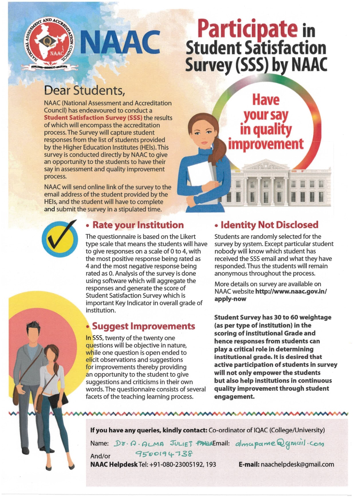 Stella Matutina (Morning Star) College of Education under the Management of the Franciscan Sisters of the Presentation of Our Lady was established in July 1961. The College offers B.Ed., M.Ed., M. Phil, and Ph.D. Degree courses. The College has been conferred Autonomous status in 2005. However, it continues to be affiliated College of Tamil Nadu Teachers Education University and is autonomous in the sense that it is free to frame its own courses of study and to adopt innovative methods of teaching and evaluation. The college has been accredited at the five star level by the National Assessment and Accreditation Council (NAAC) in April 2000, re-accredited at Grade ‘A’ level in 2007, and re-accredited (Third Cycle) at ‘A’ Grade with CGPA: 3.48 in December 2014.
